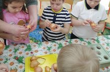 камешков выкладывать дорожку. Закрепить свойства сухого и сырого песка. Развивать мелкую моторику. Воспитывать самостоятельность, аккуратность, воспитывать отзывчивость и умение сочувствовать персонажам.Максат. Форма ярдәмендә комнан өй төзелеше төзергә, ташлардан юл җәяргә өйрәтү. Коры һәм дымлы комның үзлекләрен ныгыту.Балаларның вак моторикаларын үстерү. Мөстәкыйльлелек, пөхтәлек, ярдәмчелелек тәрбияләү, персонажларга карата кайгыртучанлык булдыру.