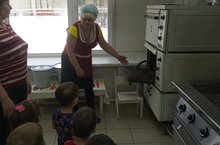 Азык - төлек блогына экскурсия: "Барысында белергә телим". Экскурсия барышында балалар пешекче һөнәре белән таныштылар. Ашханә предметларын һем ашарга пешерә торган савыт - сабаларны күрделәр. Балалар бик күп уңай хисләр алдылар, пешекчеләргә тәмле ашлар, боткалар өчен рәхмәт белдерделәр.