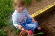 Привезли песок для сада,Я этому – безумно рада!С ним буду целый день играть,Лепить куличек, загорать! -