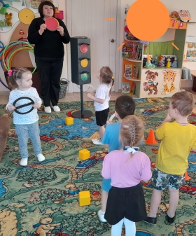 Обучение правилам дорожного движения - это жизненная необходимость, поэтому различные мероприятия по ПДД всегда актуальны. Воспитанники 2 мл. группы " Радость" (педагог Маркелова Т.Н.) закрепили свои знания, значение сигналов светофора , при помощи подвижной игры "Автомобили".