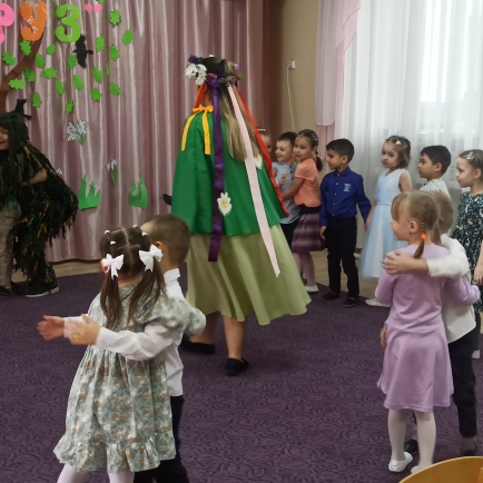 С веселыми кричалками, частушками, хороводами и русскими народными песнями встречали Масленицу воспитанники нашего детского сада. Создать атмосферу поистине народного гуляния помогли несложные аксессуары. Детей нарядили в яркие русские платки от чего они пришли в неописуемый восторг. Программа развлечения получилась очень веселой. К ребятам на Масленицу заглянула Баба Яга, которая под звуки русской музыки устроила для всех ребят соревнования. Как положено на празднике, дети от души веселились: водили хоровод, В заключение ребята с удовольствием поедали вкусные блины, которые для них испекли повара детского сада.