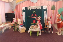 Итоговым мероприятием в рамках реализации проекта стала драмтизация сказок на татарском языке: татарская народная сказка "Три сестры" (дети-татары старшей группы), сказка "Кто что любит" (русскоязычные дети подготовительной к школе группы), русская народная сказка "Теремок" (русскоязычные воспитатели ДОУ)