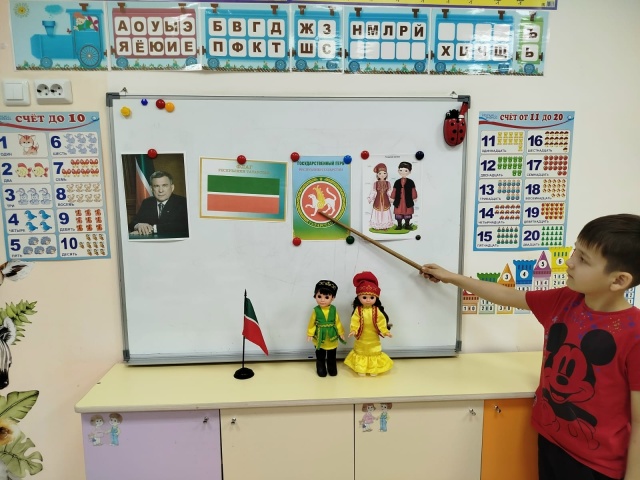 С целью воспитания у подрастающего поколения чувства патриотизма, любви к своей Родине, уважения к истории своей республики в логопедической группе (педагог Тимошина М.А.) прошло тематическое занятие, посвященные этому знаменательному дню. В ходе занятия воспитанники узнали историю возникновения праздника, а также закрепили основные символы Республики Татарстан.
