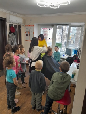 В рамках месячника по профессиональной ориентации воспитанники подготовительной группы "Радость", были на экскурсии в салоне красоты (педагог Маркелова Т.Н.). С целью обогатить знания детей о труде парикмахера, воспитывать ценное отношение к труду. Дети с большим интересом наблюдали за мастером салона, закрепили названия предметов, которыми пользуется парикмахер. По окончании экскурсии многие дети захотели стать парикмахером, чтобы дарить людям красоту и радость.