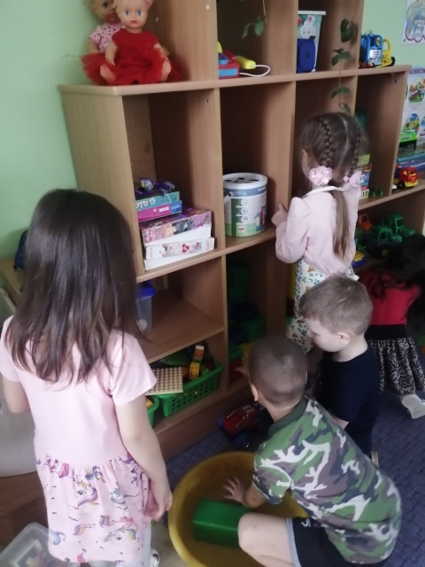 Хозяйственно-бытовой труд. Цель: учить детей содержать игрушки в порядке - мыть, сушить, расставлять их на места, протирать полки, пользоваться влажной тряпочкой. Воспитывать трудолюбие, аккуратность, умение трудиться сообща.