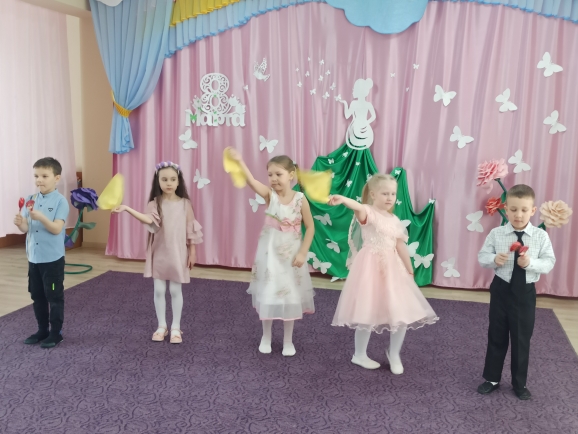 Международный женский день – это как раз тот самый праздник, когда мы можем поблагодарить своих мам за все хорошее, что они сделали для нас, выразив свою любовь и заботу. Этот день согрет лучами солнца, женскими улыбками и украшен россыпью цветов. Ведь мамочка – это самый дорогой человечек в мире! Ведь мы обязаны ей своим появлением, ведь она, недосыпая ночами, пела нам колыбельную и именно она всегда поймет, простит, поможет во всех начинаниях, и подставит теплое плечо, в трудную минуту. Со 2 по 4 марта в нашем детском саду прошли утренники, посвященные Международному женскому дню 8 Марта! Дети исполняли трогательные и душевные песни для мам и бабушек, веселые частушки, сценки, заводные танцы. Своими выступлениями, ребята подарили мамам много добрых слов, нежности и внимания. Сюрпризным моментом были подарки, сделанные руками детей. Праздник прошел в теплой, душевной атмосфере. Участники получили массу впечатлений и зарядились позитивными эмоциями.