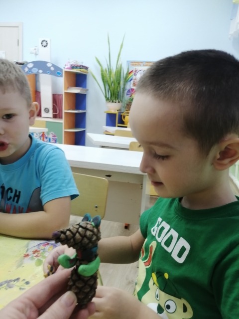 Лепка из природного материала. Развиваем координацию рук, воображение, фантазию, закрепляем приёмы лепки. Воспитываем интерес к работе с природным материалом.