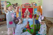 Цель: активизировать словарь детей, совершенствовать умение эмоционально передавать характер сказки, четко и внятно произносить слова. Развитие музыкально-художественной деятельности детей, выразительности мимики, жестов, голоса. Воспитание у детей интереса к театрализованной деятельности, дружеских взаимоотношений, вежливости.