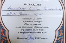 Поздравляем воспитанницу старшей группы Адылгараеву Амалию за 1 место в районном конкурсе "Мин татар кызы" среди воспитанников ДОУ п.г.т. Уруссу.