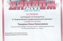 Поздравляем победителя вторй степени Токареву Нину Николаевну учителя-логопедаВсероссийского профессионального конкурса "Гордость России"