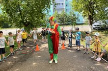 Игры и развлечения на свежем воздухе - приятное времяпровождение. Они благоприятно влияют на физическое и умственное развитие детей. Сегодня в МБДОУ «Детский сад №4» воспитанники средней и старшей группы приняли участие в летнем развлечении «Сюрприз от клоуна Кирюши», которое проходило на участке детского сада. Вместе с клоуном дети выполняли различные задания, танцевали с мячом, играли в догонялки, танцевали ритмические, подвижные танцы, играли в познавательную игру «Разбери овощи и фрукты» .