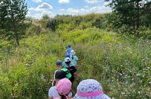 Затем, воспитанники подготовительной к школе группы отправились в туристический поход вместе воспитателями, дружно маршировали в сторону стадиона «Энергия» под чётким руководством своих воспитателей и по четкому маршруту.