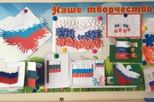 Накануне были проведены ознакомительные беседы - презентации «Триколор страны родной». Беседа о гербе и флаге России очень заинтересовала ребят. Они еще раз поговорили о значении символов нашего герба, флага, вспомнили, что главная песня России – это гимн. Была оформлена выставка творческих работ на тему: «Флаг Родины», все работы получились красочными. Ребята приняли участие в музыкально – спортивном мероприятии «Родина». Где читали стихи, играли в игры.