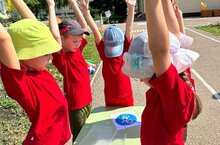 На протяжении всего летнего развлечения дошкольникам были предложены увлекательные игры и задания. Ребята весело и дружно искали грибочки для белочки, собирали шишки, отвечали на вопросы.