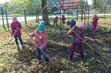 С дошкольного возраста каждый ребёнок обязательно, должен принимать участие в труде, и те несложные обязанности, которые он выполняет в детском саду и в семье, должны стать повседневными. Только при этом условии, труд оказывает на детей определённое положительное воспитательное воздействие.С наступлением осени все наши воспитанники вместе со своими воспитателями ежедневно трудятся на территории детского сада, стараясь убрать опавшие листья до наступления холодов. Ребята помогают: кто-то сгребает листья, кто – то подметает, а малыши с большим удовольствием собирают веточки, опавшие с деревьев.
