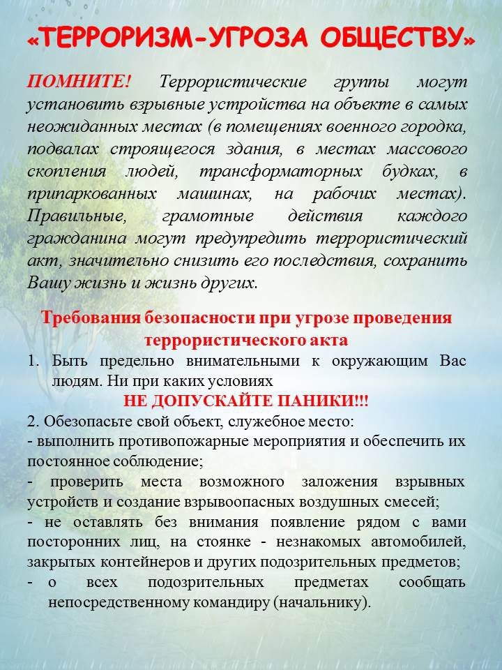 - Случайно узнав о готовящемся теракте, немедленно сообщить об этом в правоохранительные органы.