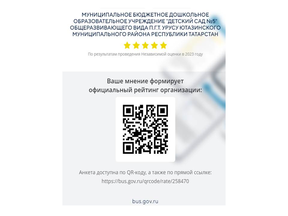 Муниципальное бюджетное дошкольное образовательное учреждение «Детский сад №5» общеразвивающего вида п.г.т.Уруссу Ютазинского муниципального района РТ/Татарстан Республикасы Ютазы муниципаль районы муниципаль бюджет мәктәпкәчә белем бирү учреждениесе шәһәр тибындагы Урыссу бистәсе "5нче санлы балалар бакчасы"