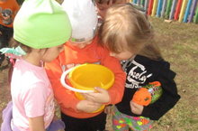 Приняли участие со старшими дошкольниками в праздничных мероприятиях на садионе "Энергия", попробовали предложенные пирожки, блины, компоты.