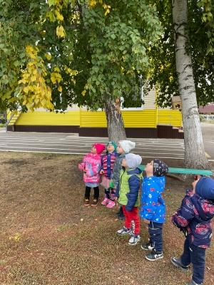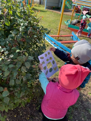 Мы по садику гуляли, за природой наблюдали. Без табигатьне карап, бакча буйлап йөрдек.
