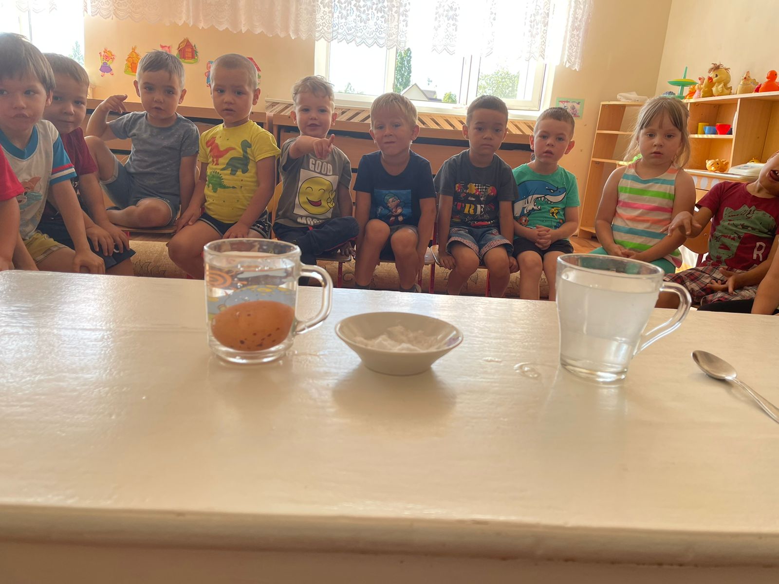 Бүген без экспериментлар үткәрдек, тоз һәм чиста су үзенчәлекләрен өйрәндек, шулай ук тавык йомыркасының төрле тыгызлыктагы суда үзен ничек тотуын белдек. Тозлы су тыгызлыгы чиста судан зуррак икәнен белдек - йомырка өскә йөзә, һәм чиста суда ул төбендә кала.