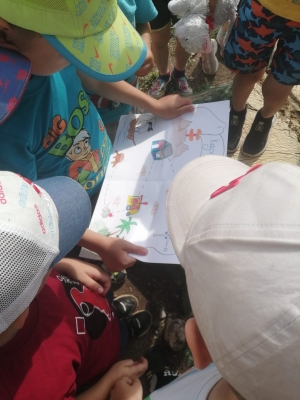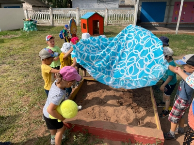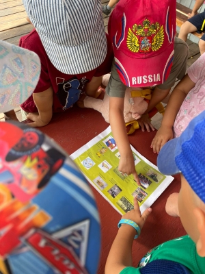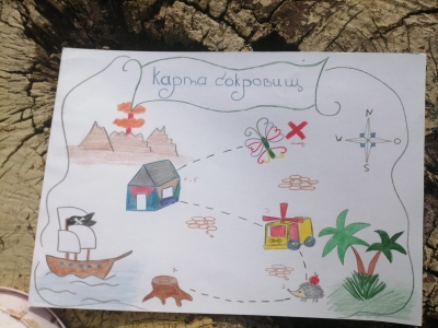 Дети искали затонувшие сокровища. По легенде, много лет назад на месте детского сада было море, здесь-то и затонул сундук с сокровищами. Ребята выполняли различные задания, искали части карты, а потом собрали её целиком и нашли сокровища. / Балалар баткан хәзинәләрне эзләделәр. Риваятьләр буенча, күп еллар элек балалар бакчасында диңгез булган, һәм монда хәзинә сандыгы баткан. Егетләр төрле биремнәр башкардылар, картаның өлешләрен эзләделәр, аннары аны тулысынча җыеп, хәзинәләр таптылар.