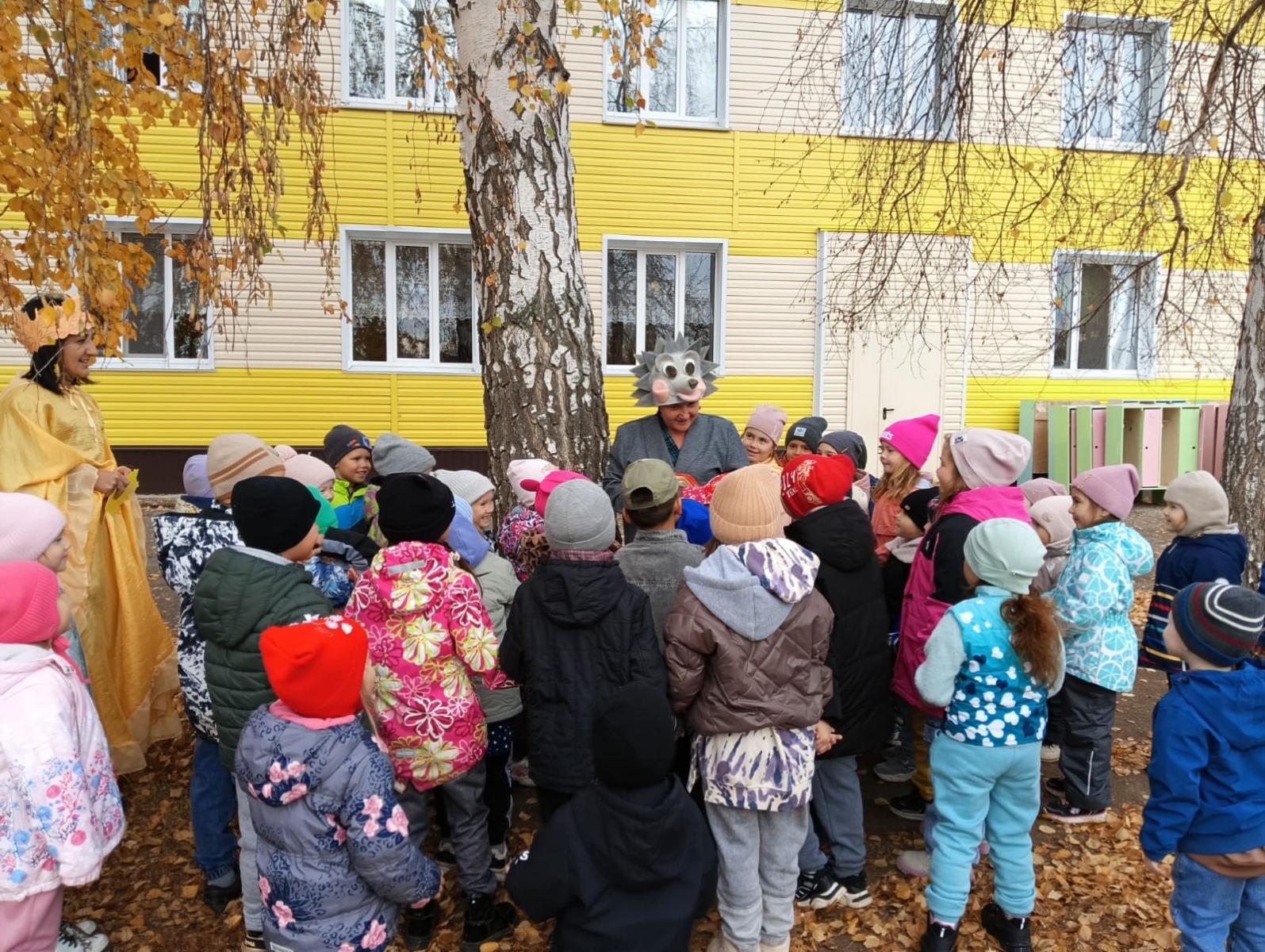 Праздники в детском саду — это всегда волшебство, а осень считается самым волшебным временем года. Яркие краски, парад листьев, овощей и фруктов. В это чудесное время для воспитанников нашего детского сада прошел осенний праздник.В гости к ребятам пришла красавица Осень. Она пела с детьми песни, танцевала, играла в веселые игры,раздавала угощения. Самым ярким и запоминающимся эпизодом праздника стало появление Ёжика, который не любил ярких красок. Но дошкольники убедили его, что осень — красочное время года, когда можно радоваться шороху золотистых опавших листьев под ногами, дождику, под которым так интересно гулять под зонтиком, обувь резиновые сапожки. Праздник получился веселым и ярким, поларил много позитивных эмоций и ребятам!