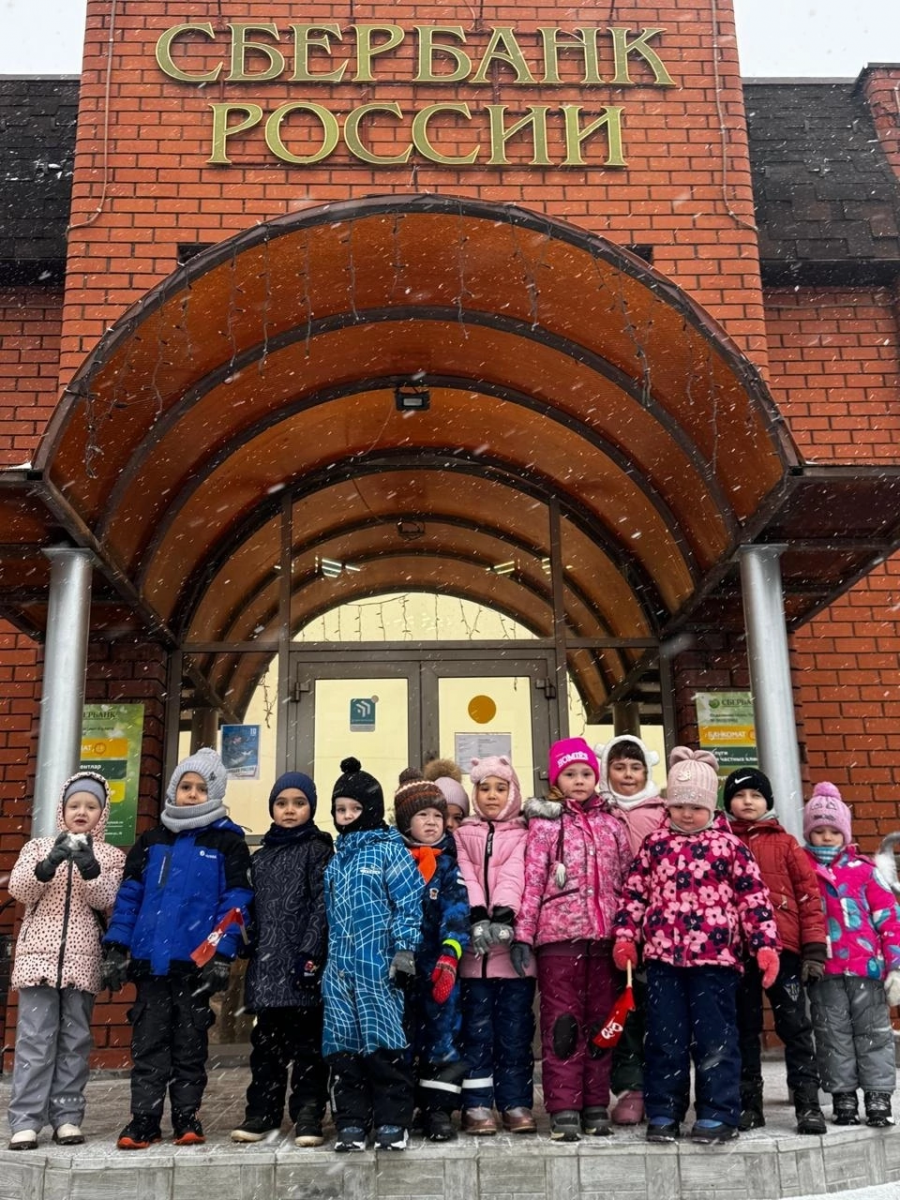 Экскурсия в Сбербанк России. Наши воспитанники получили представления о работе банка, сотрудниках банка, увидели, как с помощью банковской карты, сберегательной книжки можно пользоваться виртуальными деньгами.