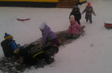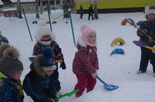 Дети с охотой собирали снег лопатками, чтобы потом сделать горку. Дети учились работать в коллективе: дружно, весело, вместе! Хочется отметить, что такая совместная работа делает сплоченными детей. И конечно, что немало важно, если приучать детей к трудовой деятельности с раннего возраста, то можно достичь очень больших результатов, и в дальнейшем в жизни им все пригодится!