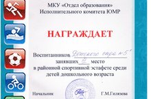 Воспитанники нашего детского сада заняли 3 место в районной спортивной эстафете среди детей дошкольного возраста "Дружим мы со спортом".