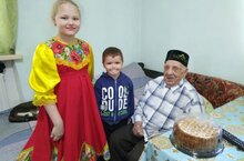 Ученица 4а класса Полина Галимова поздравила с днём Победы ветерана Великой Отечественной войны Миннекаева Миннебая Миннекаевича