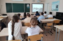 | У нас учатся: | 557 учащихся/ бездә 557 укучы белем ала(иностранные граждане отсутствуют) |
