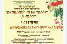 По итогам Регионального конкурса фотографий "Осенний переполох" в номинации "Волшебный сундучок" победителем стала Шапошникова Виктория, обучающаяся 2Б класса МБОУ "Уруссинская гимназия". Поздравляем и желаем новых побед!