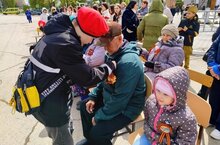 Члены юнармейского отряда "Патриот" подарили ветеранам броши, которые сделали своими руками и поздравили с праздником, выразили слова благодарности за мирное небо над головой. Одним из элементов украшений стала световозвращающая лента.