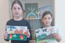 Ученицы 4В класса Уруссинской гимназии Каримова Рушания и Малеева Шахзода приняли активное участие в районном конкурсе рисунков "Война глазами детей "