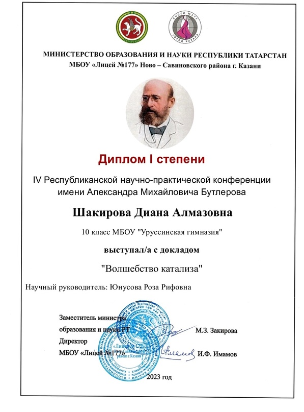 - 28 апреля в Лицее №177 г. Казани прошла IV Республиканская научно-практическая конференция имени А. М. Бутлерова.