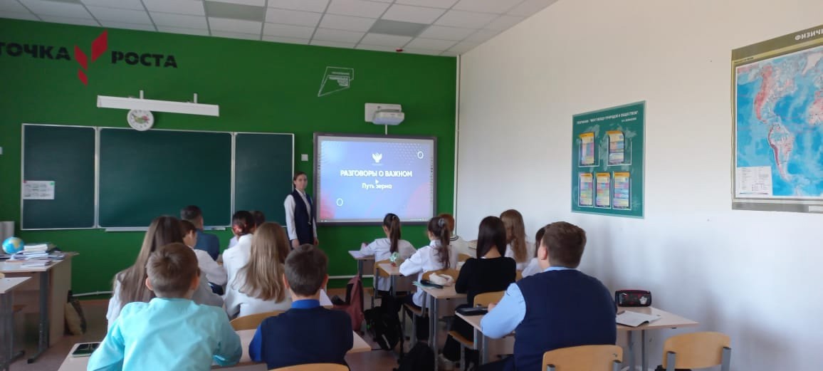 23 сентября 2024 года в МБОУ «Уруссинская гимназия» прошли уроки из цикла «Разговоры о важном». Тема занятия — «Путь зерна». Его основная цель: формирование у школьников общего представления о процессе выращивания зерновых культур, а также понимания роли агропромышленного комплекса в экономике и продовольственной безопасности России. Фото