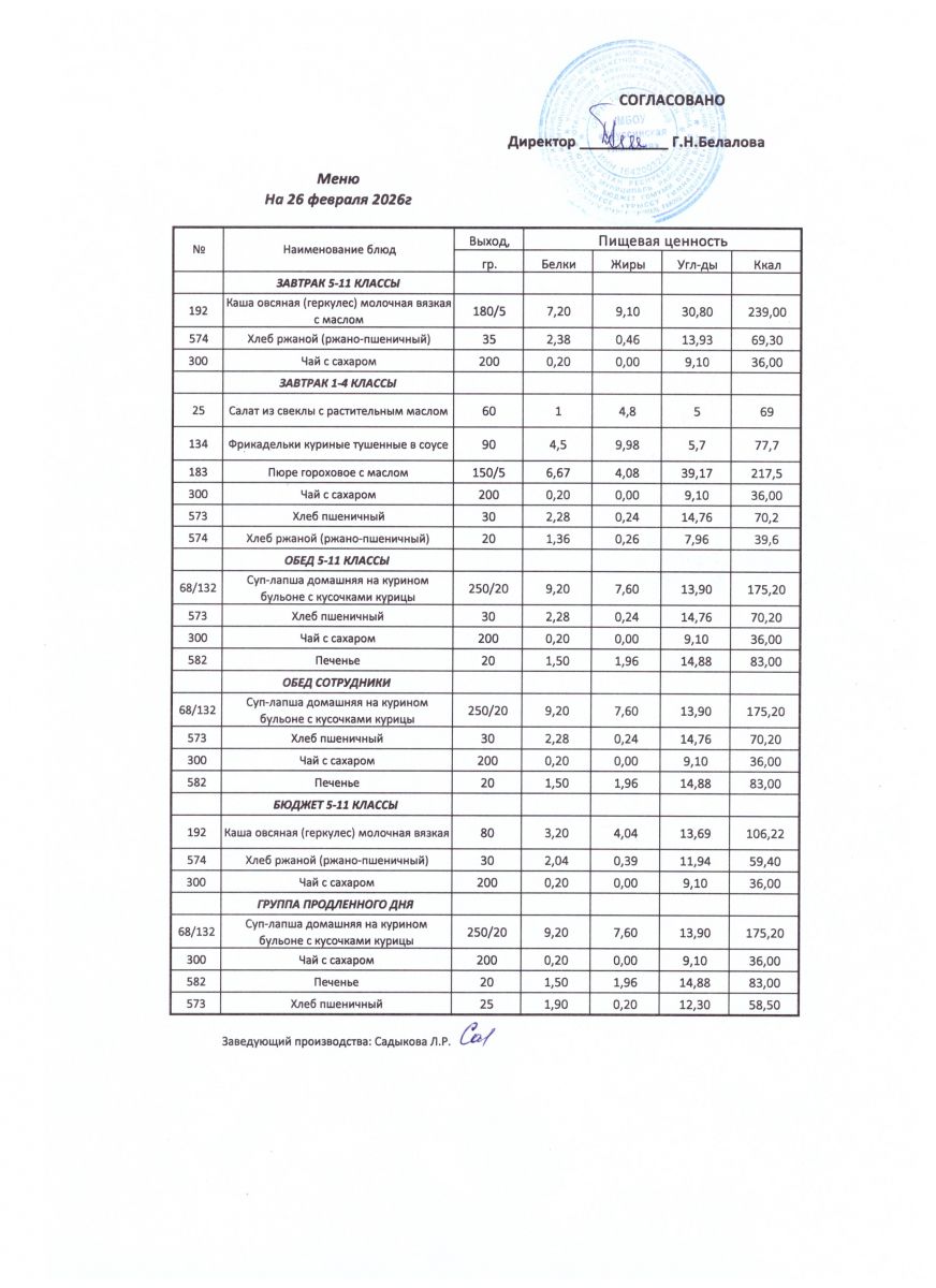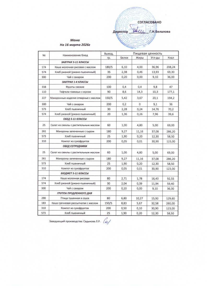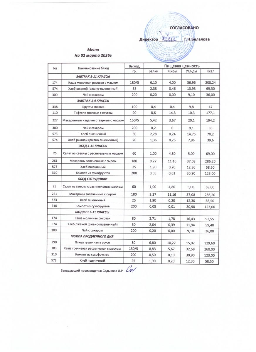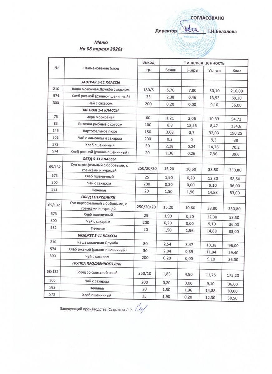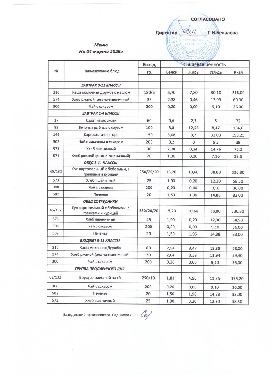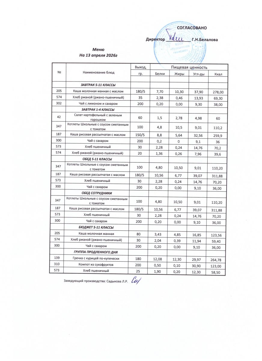 ежедневные меню