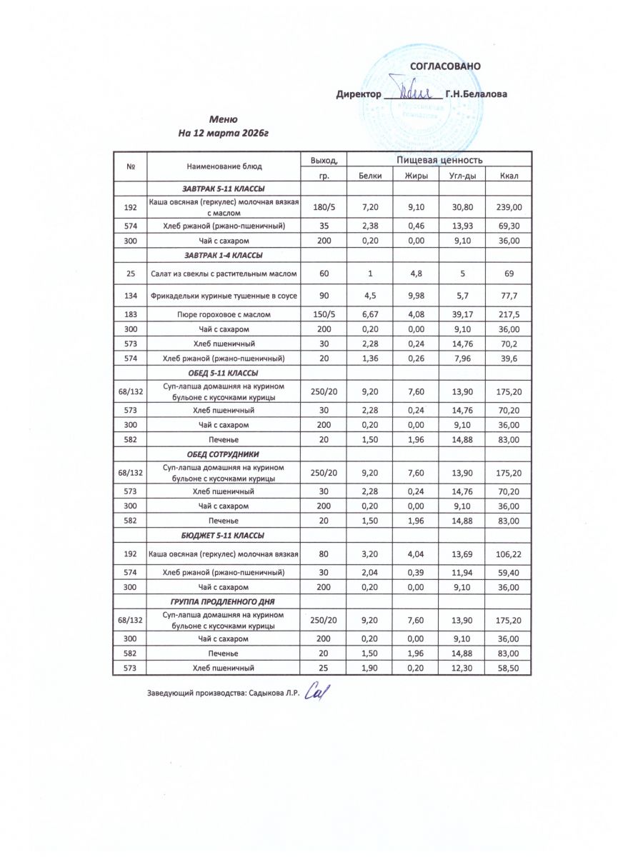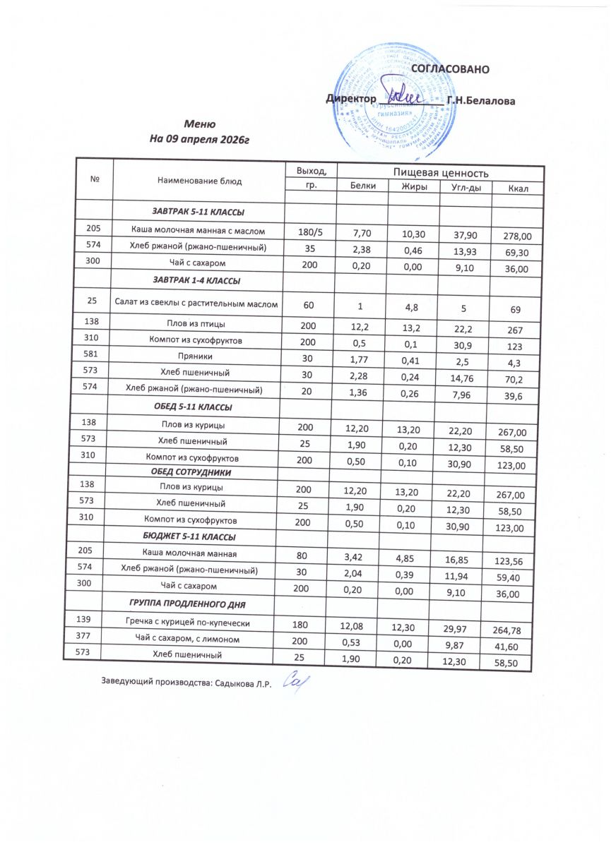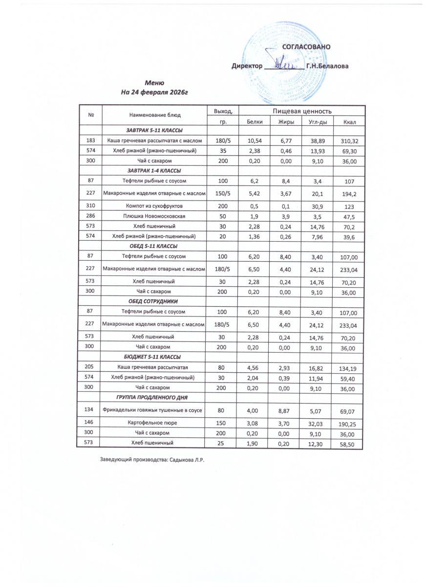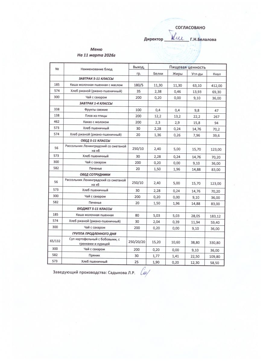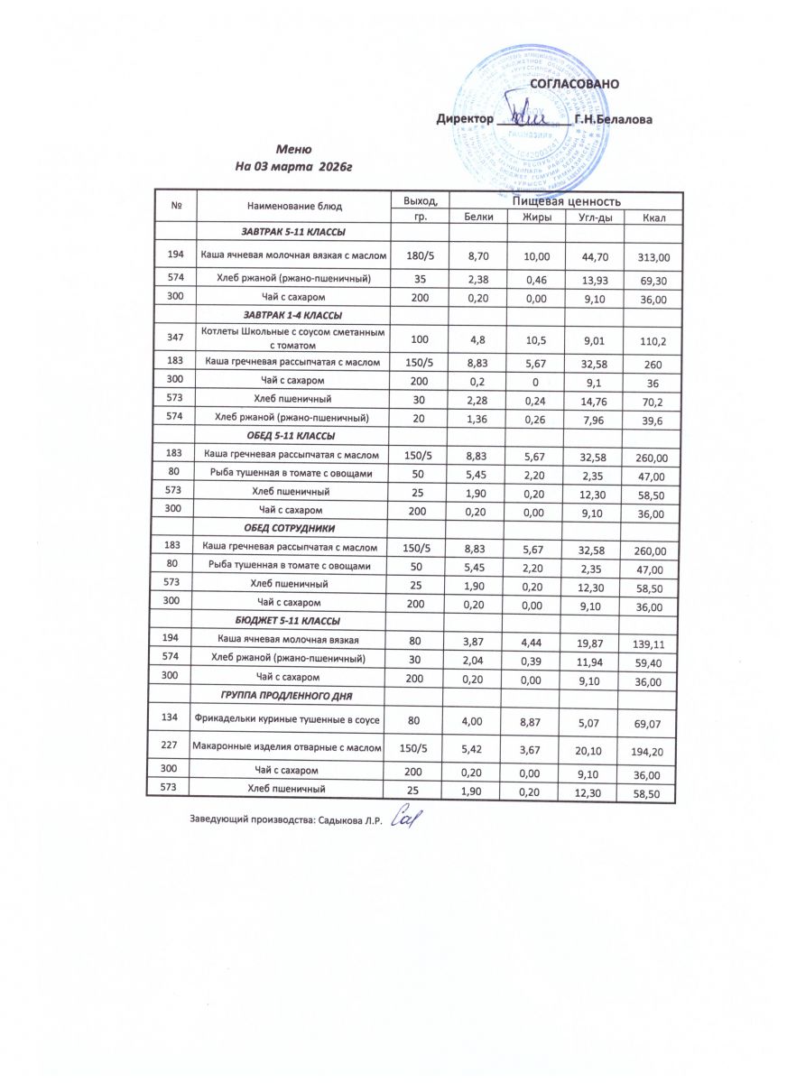 ежедневные меню