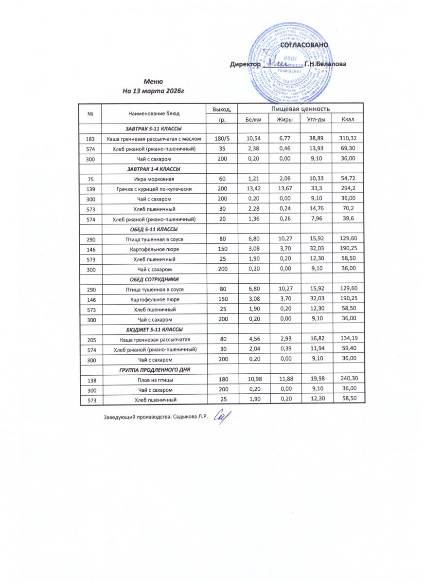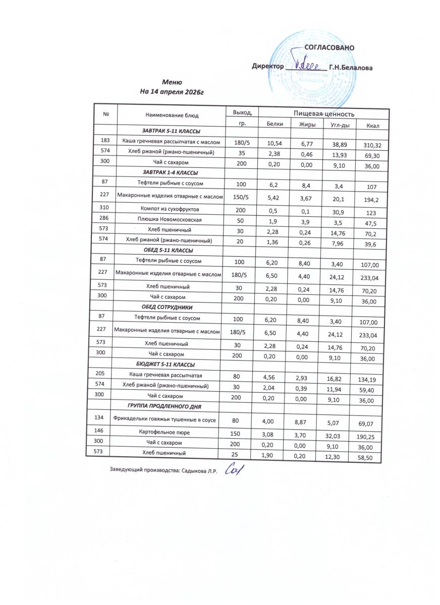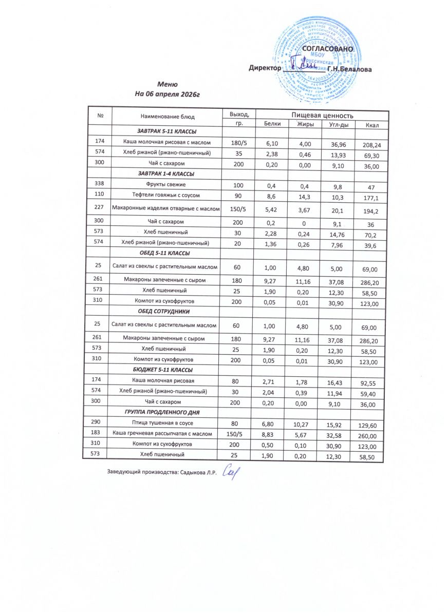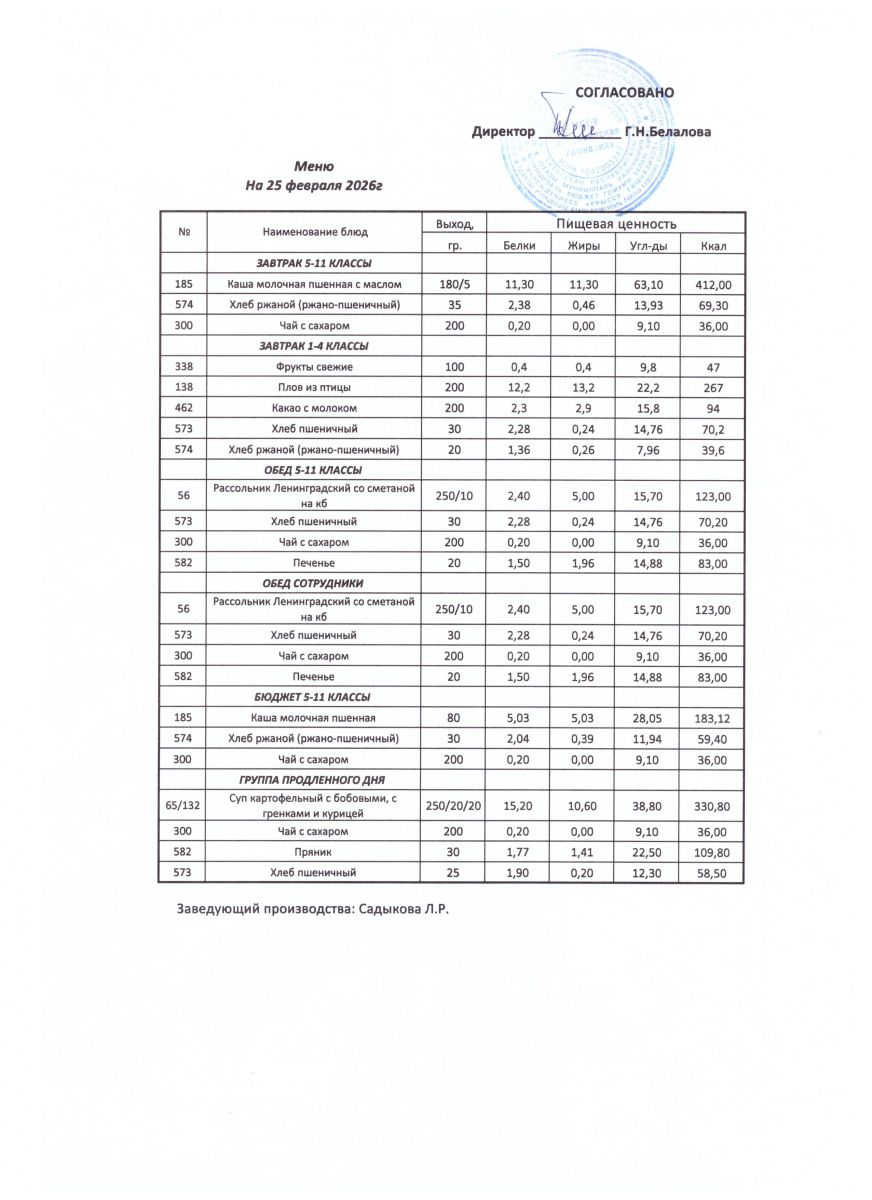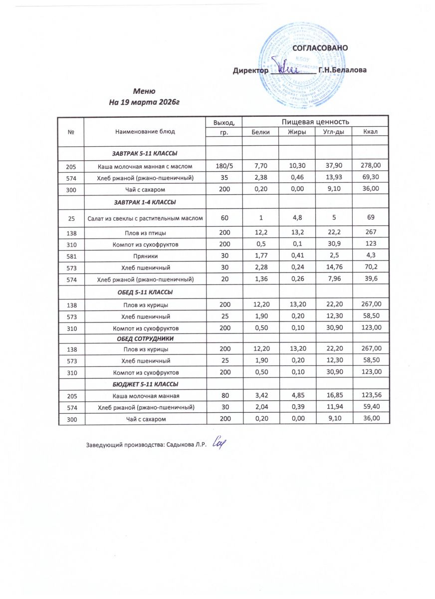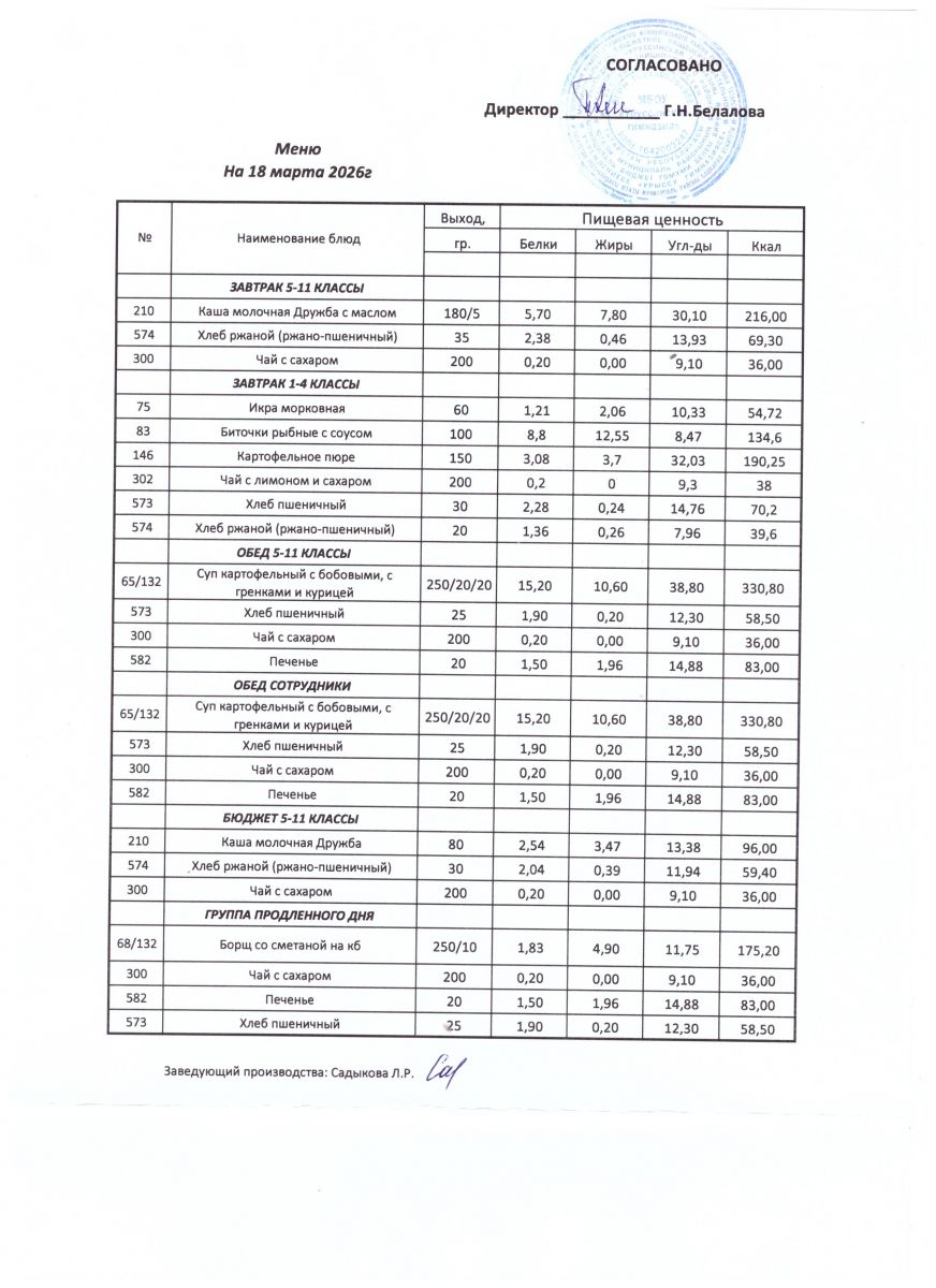 ежедневные меню
