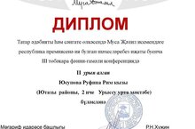 Дипломант III Межрегиональной научно-практической конференции в области татарского литературного искусства 26.02.2025