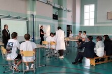 Наша школа тоже приняла участие. Учитель физической культуры Царькова А.И. и учитель химии и биологии Камалова Р.Ф. показали интегрированный урок в 9 классе на тему «Применение возможностей электрокардиографии на уроке для анализа уровня физической нагрузки».