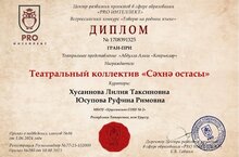 Театральный коллектив нашей школы «Сәхнә остасы»участвовал во Всероссийском конкурсе "Говорю на родном языке". Получил высшую награду конкурса – Гран-при. -