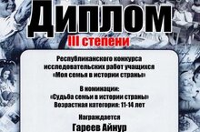 Дипломант III степени Республиканского конкурса исследовательских работ " Моя семья в истории страны" 16.05.2024