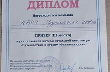 Диплом за 3 место в интеллектуальной квест-игре "Путешествие в страну Финансландию", 28.03.2024