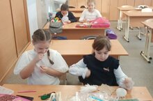 на занятии объединения "Мастерица" девочки делали подарки - обереги для солдат 14.02.2023