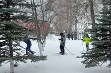 Наши малыши тоже не отстают в покорении лыжни. Пусть это не соревнования "Лыжня России", но заряд бодрости обеспечен.