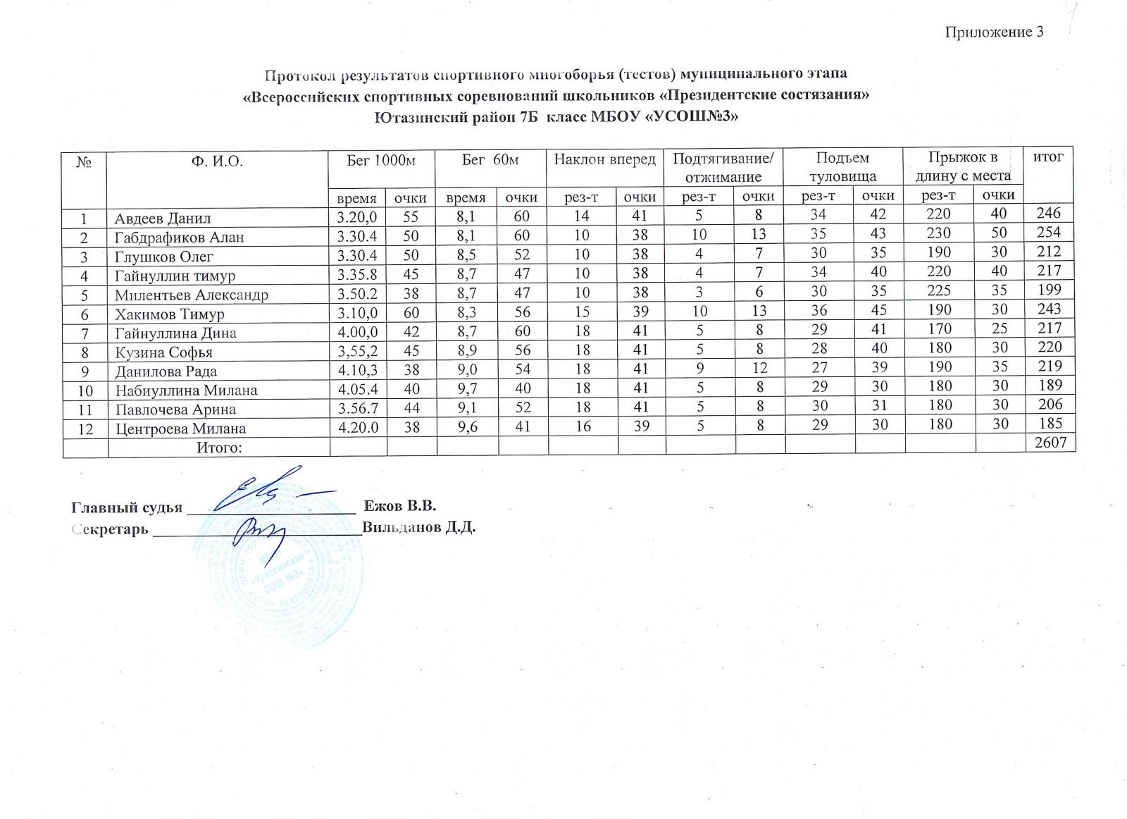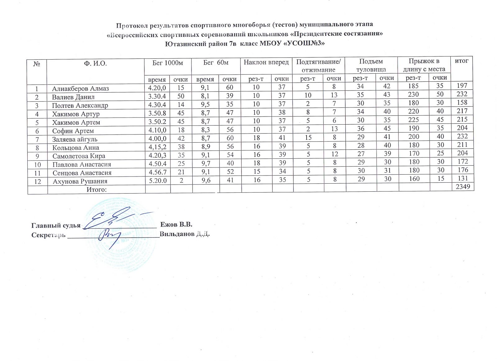 Протокол результатов спортивного многоборья (тесты) муниципального этапа "Всероссийских спортивных игр школьников "Президентские состязания" 2021