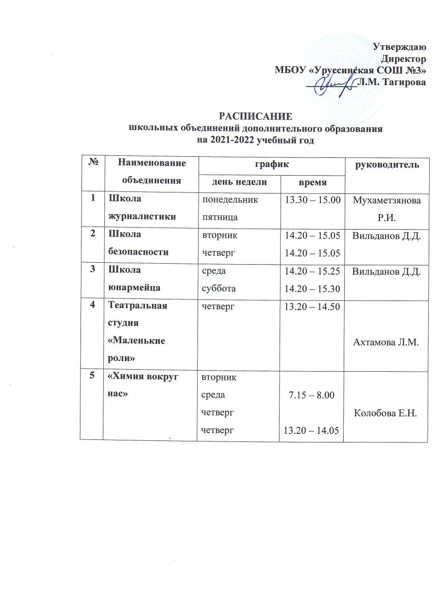 Расписание занятий дополнительного образования на 2021-2022 учебный год