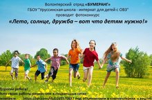 Волонтерский отряд "Бумеранг"проводит фотоконкурс "Лето,солнце,дружба-вот что детям нужно!"