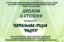 Учащиеся Уруссинской школы -интернат приняли участие в конкурсе театрального искусства и были приглашены на экскурсию в город Казань.Коллектив Уруссинской школы-интернат был награжден диплом II-степени и грантом для развития театральной студии "Радуга".Молодцы!